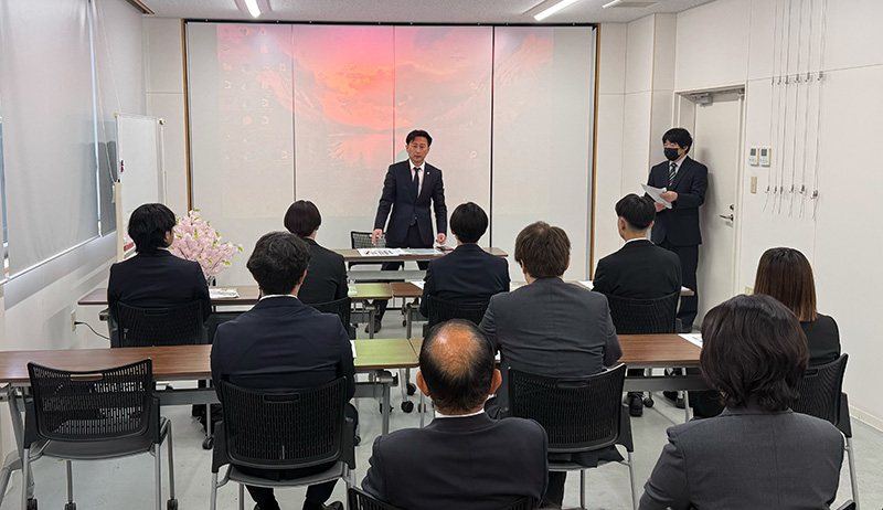 4月1日(水)本社にて、令和8年度の入社式を行いました。 高知丸高は5名、グループ会社(株)南建2名、ウェルネス事業部1名、合計8名の新入社員を迎えました。 各部署の新戦力となるため、今後各部署にて新入社員研修が始まります。 ご安全に!!