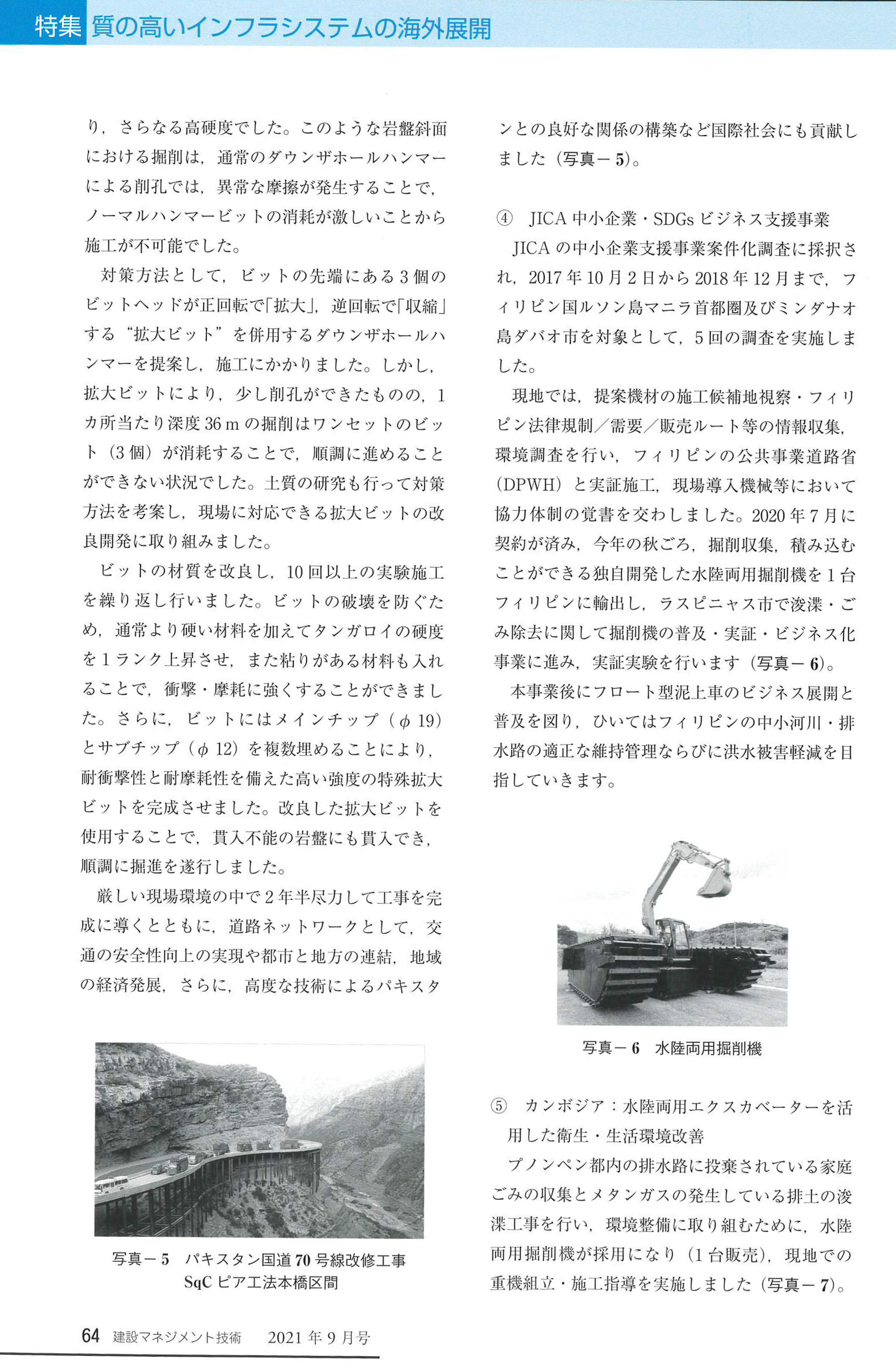 弊社が海外プロジェクトの推進及び今後の展開につて、令和3年9月、【建設マネジメント技術】の雑誌に掲載されました。