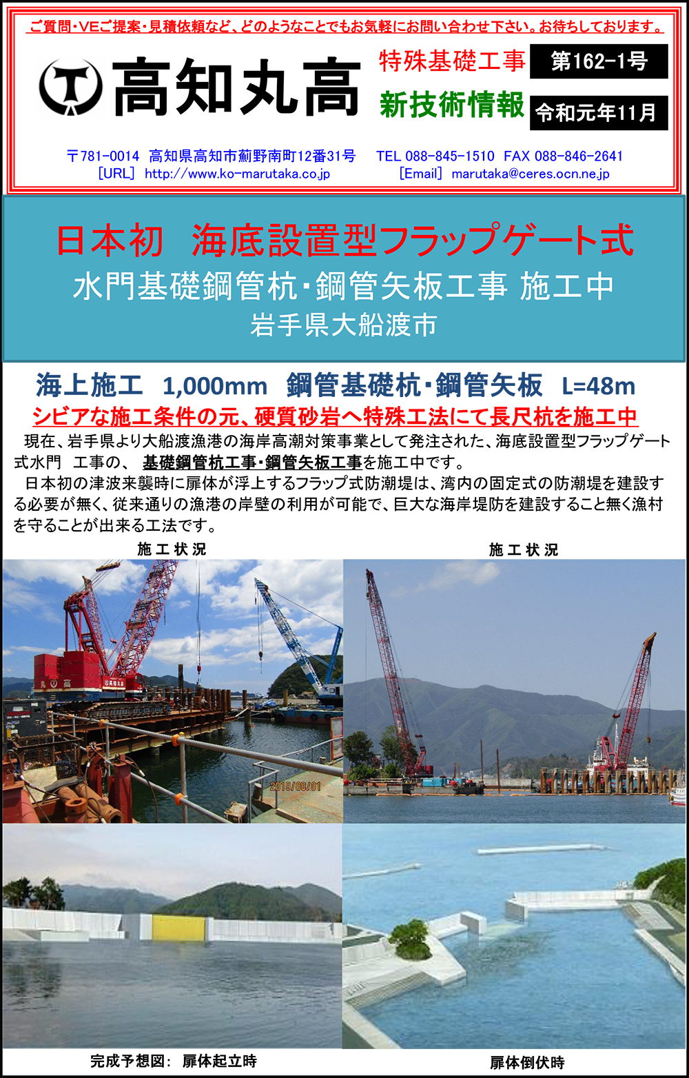『日本初 海底設置型フラップゲート式水門基礎鋼管杭・鋼管矢板工事(岩手県大船渡市) 施工中』