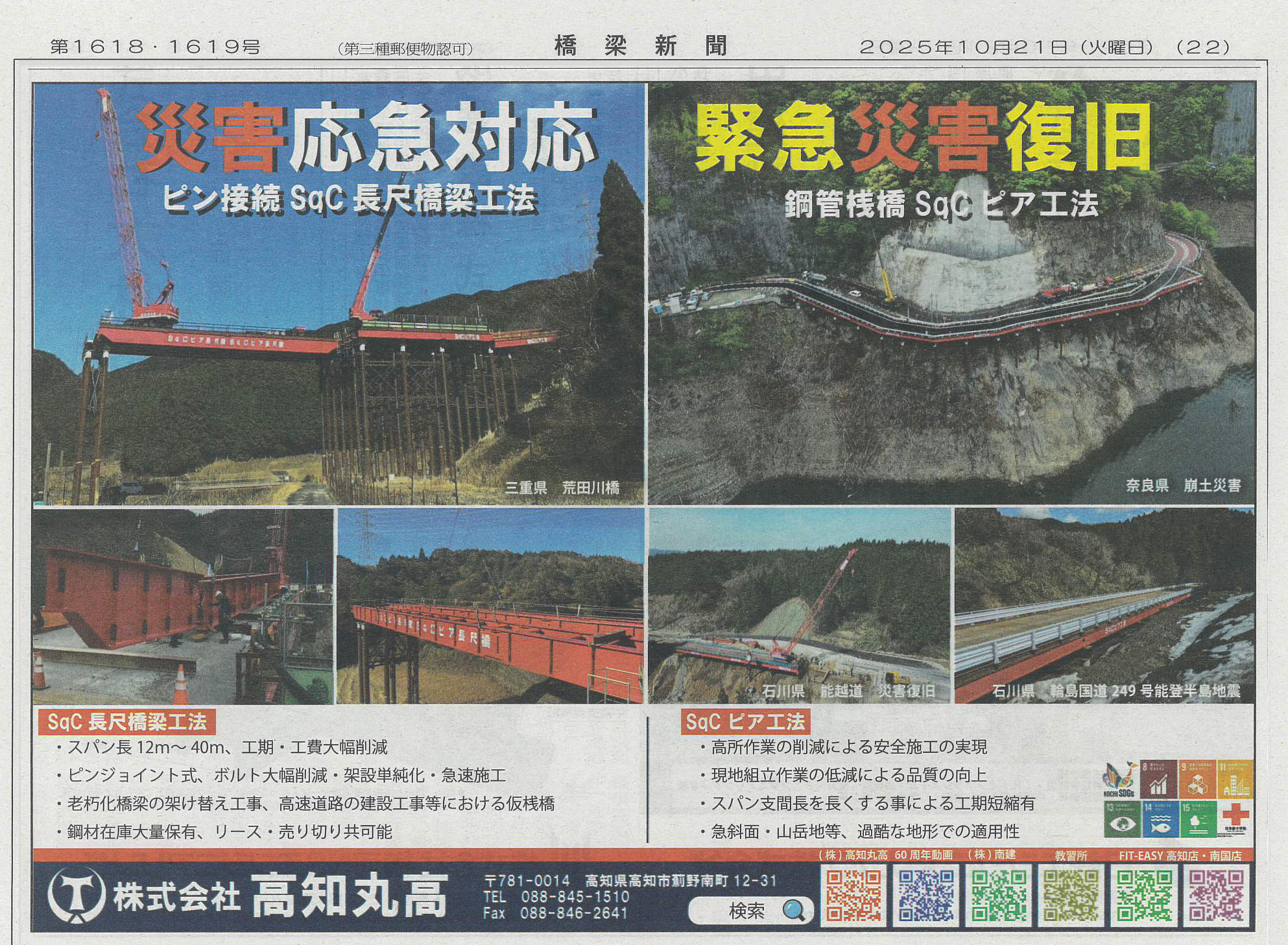 10月21日の橋梁新聞におきまして、弊社の広告が掲載されました。ぜひ、ご覧ください。