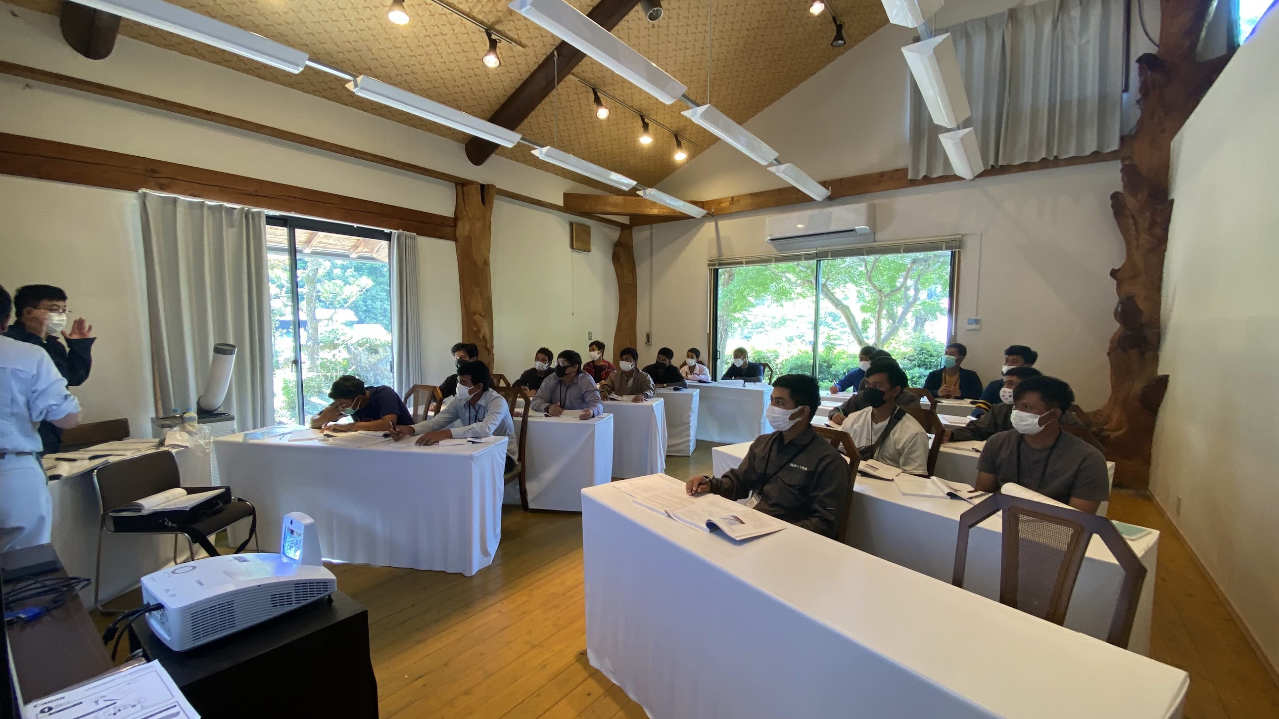 8月6日から5日間、高知建機技能センターで19人のミャンマーの皆様が玉掛け技能講習を受講されています。玉掛け学科と実技も頑張ってください。